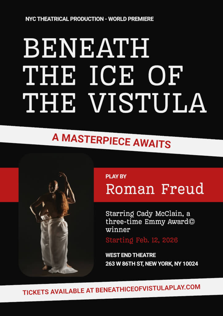 В феврале 2026 года на сцене West End Theatre (263 W 86th Street, Нью-Йорк) представят музыкальную драму «Подо льдом Вислы» (Beneath the Ice of the Vistula) — спектакль, который уже называют одним из самых пронзительных и необычных событий сезона Off-Broadway.